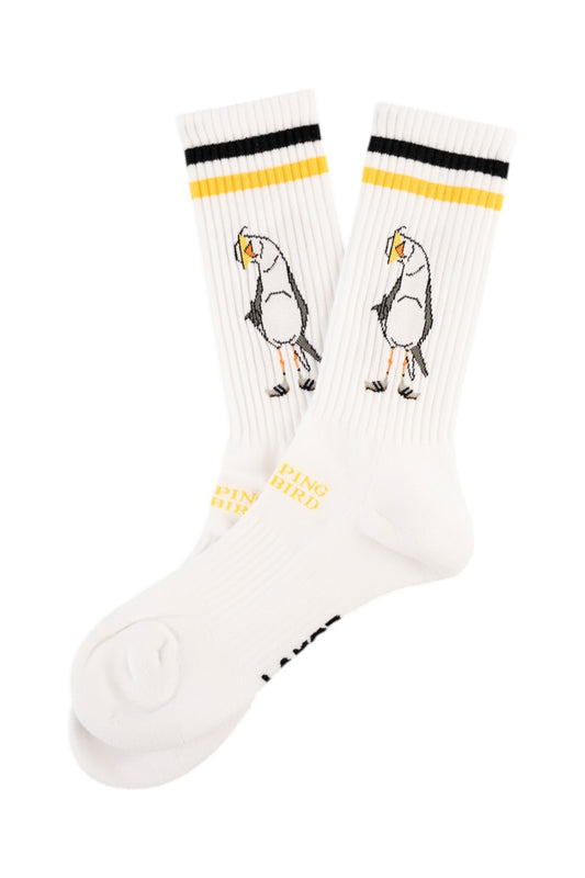 Disse hvide strømper kombinerer et klassisk sporty udtryk med et humoristisk og iøjnefaldende motiv. Det...