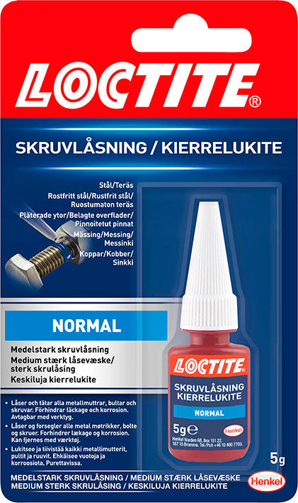 Låser møtrikker og skruer.Hærdes efter 15-30 minutter.