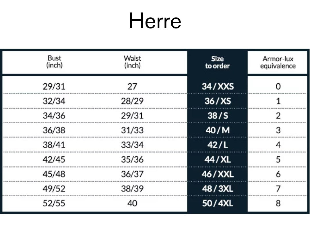 Herunder kan du se vores størrelsesguide til Armor Lux til herrer og damer. Hvis du gerne vil se alle vores produkter fra mærket, kan du klikke på nedenfor.