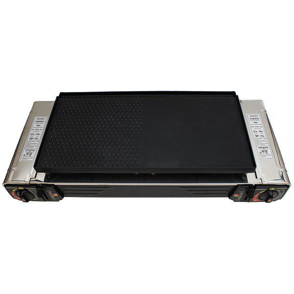 Den medfølgende grillplade dækker begge brændere og er perfekt til stegning af kød, fisk og grøntsager. Non-stick belægning forhindrer mad i at sætte sig fast og gør rengøringen nem. Grillpladen bliver varm og klar til grill umiddelbart efter optænding.