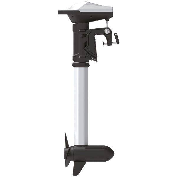 El-påhængsmotor der svarer til en 5 HK benzin motor. Motoren leveres uden batteri. Benet er aluminium. Til både med styring. Leveres med fjernbetjening.