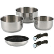 Praktisk grydesæt med 3 gryder, 1 stegepande og 2 aftagelige håndtag.
