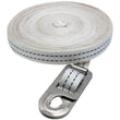 Produceret i hvid polyester med et syet øje i den ene ende og en rustfri låsekrog i den anden.
