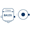 LED pære med bajonet fatning, BAY15S, paralelle ben. CE-godkendt.