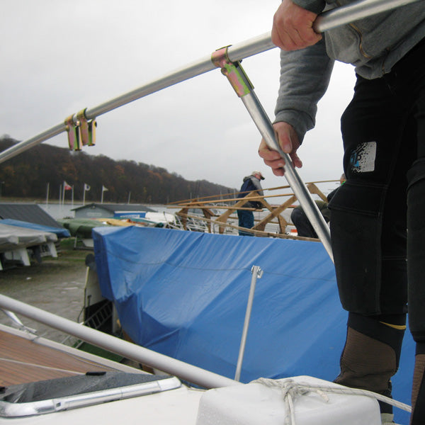 Samlebeslag, t-stykkerne og stænger er justerbare, hvilket gør at du kan tilpasse stativet til lige præcis din båd. Når stativet er samlet og presenningen rulles ud over, vil du opleve hvor fantastisk det er at have et ordentligt stativ til din presenning.