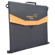 Panelet kan lægges fladt, eller opstilles på skrå med de integrerede ben. En række stropper gør det nemt at fastgøre panelet.
