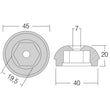 - SKU 1146252: Højde: 20 mm Materiale: zink Original nr.: 71190A Vægt: 0,12 kg Ø: 45,0 mm