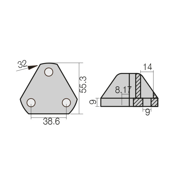- SKU 1146201: Hulafstand: 38 mm Højde: 23,0 mm Materiale: Zink Ø: 55,3 mm