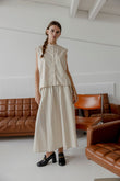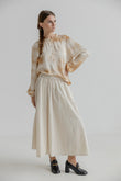 Denne nederdel er et elegant og alsidigt valg, der kombinerer enkelthed med raffineret design. Med sin lette og flydende silhuet er den perfekt til både hverdag og særlige lejligheder. Stoffet falder smukt og giver en flatterende pasform, mens den neutrale farve gør den nem at kombinere med forskellige toppe og accessories.