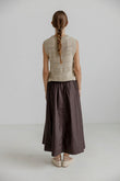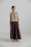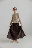 Denne nederdel er et elegant og alsidigt valg, der kombinerer enkelthed med raffineret design. Med sin lette og flydende silhuet er den perfekt til både hverdag og særlige lejligheder. Stoffet falder smukt og giver en flatterende pasform, mens den neutrale farve gør den nem at kombinere med forskellige toppe og accessories.