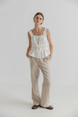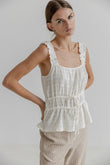 Denne smukke top er designet med en feminin og afslappet stil, der passer perfekt til både hverdagsbrug og sommerlige lejligheder. Med sine fine detaljer og lette materiale er den både komfortabel og elegant.