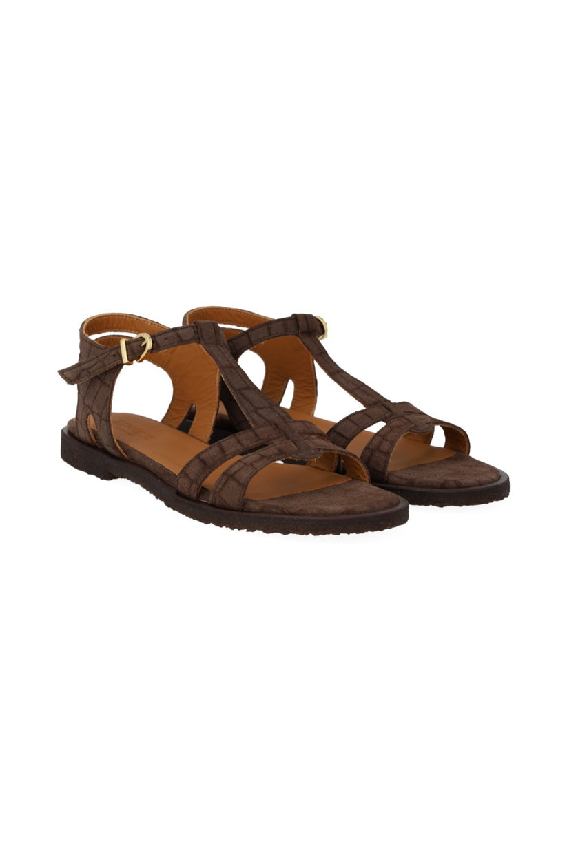 Angulus W Classic Strappy Sandal Brown Croco