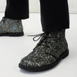 Udført i naturligt og åndbart skind, med et kanvasbaseret glitter, er denne støvle både unik og luksuriøs. Designet i Danmark og håndlavet med omhu og kærlighed i Portugal, er den et eksempel på eksklusivt håndværk.