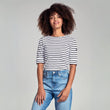 Klassisk stribet t-shirt fra Armor-Lux med rund hals og 3/4 ærmer med opsmøg.