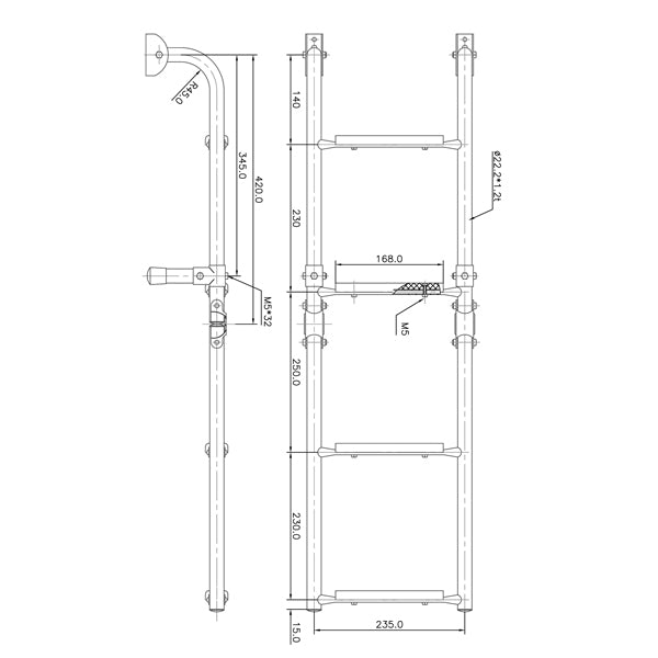 Badestige med 2+2 teak trin