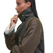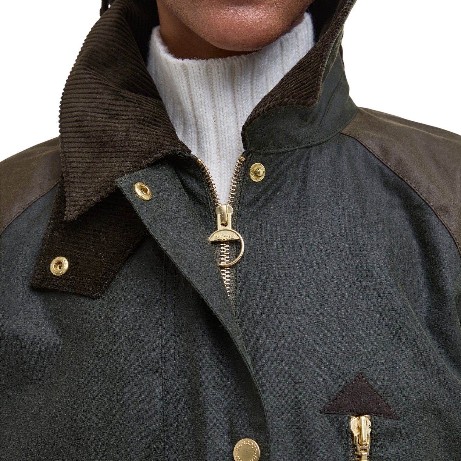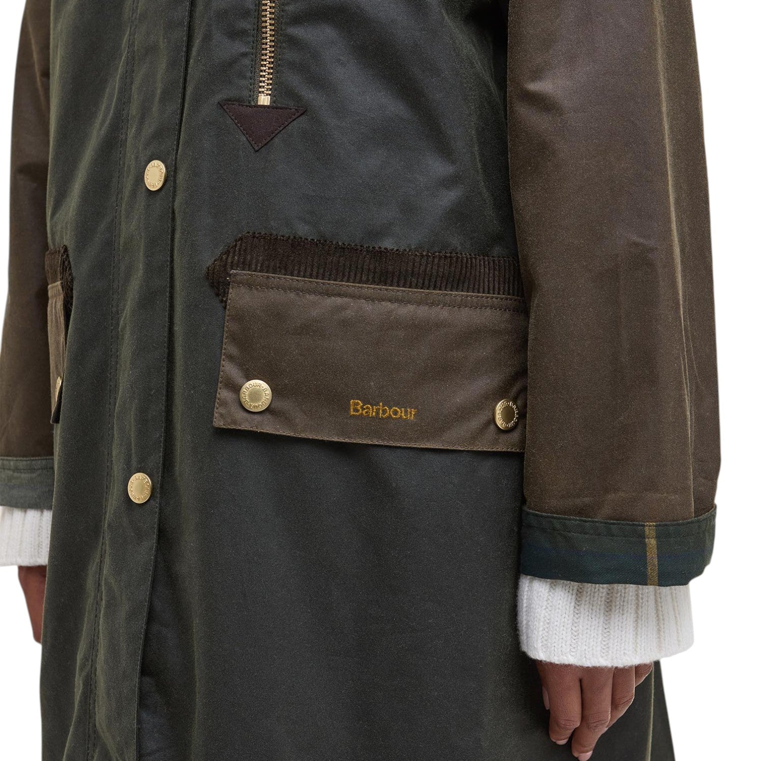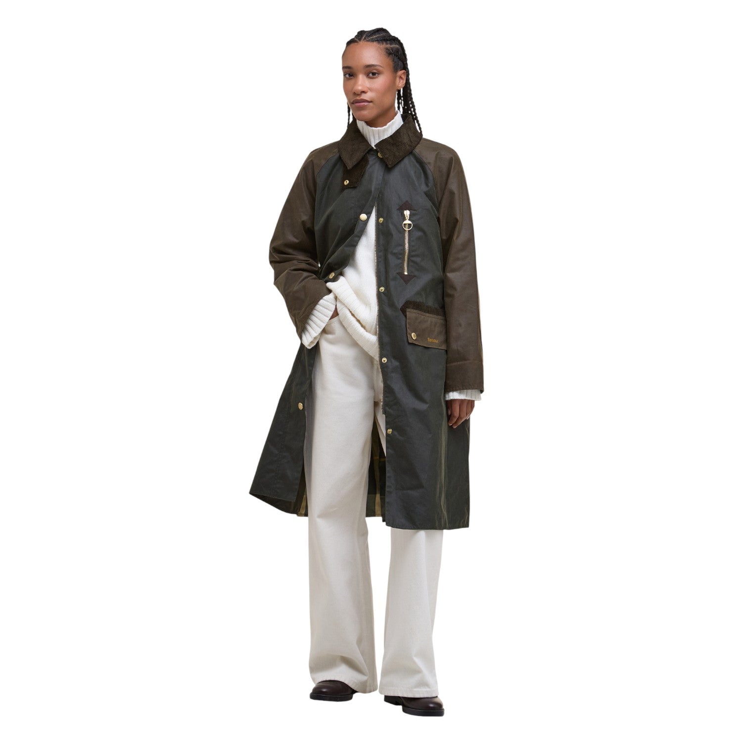 Barbour Evette Waxed Car Coat kombinerer klassisk britisk arv med moderne funktionalitet. Jakken er inspireret af Barbours historiske arkiv og designet med ikoniske detaljer som fløjlskrave, tartanfor og et dybt baglæns læg, der giver en rummelig og komfortabel pasform.