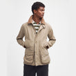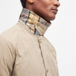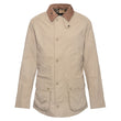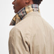 Barbour Herrejakke i en lys beige farve. Denne jakke har en klassisk design med en kontrast-krave i en brun nuance, af ruskind.