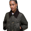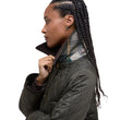 Det bløde, stribede foer indeni rummer en diskret Barbour-logo-detalje, og jakken lukkes med en solid lynlås samt trykknapper i metal, der tilføjer et råt modspil.