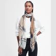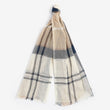 Halstørklæde med et klassisk ternet mønster i en blanding af neutrale hvide, beige og navyblå nuancer.
