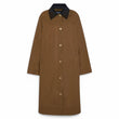 Den har et ikonisk design med i en karakteristisk mørkebrun og en kraftigt kontrasterende fløjlskrage, som giver jakken et luksuriøst touch.