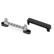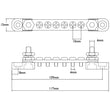 Koblingsskinne i fortinnet messing med isolerede plast monteringsfødder 2 x 6 mm terminaler til input. 4 mm rustfri skruer med speciale skiver.