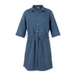 - Design: Klassisk skjortekjole med krave og gennemgående trykknapper foran.