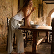 Blue Sportswear W Deleste Striped Cot/Lin Trousers Iron Blue W/Chalk