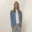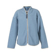 Den lette dusty blå farve giver jakken et frisk og moderne udtryk, mens de kontrastfarvede kanter og lynlåsen tilføjer et strejf af sporty elegance. Jakken har et minimalistisk design med et enkelt logo på lynlåsen, der fremhæver foréts fokus på kvalitet og tidløshed.