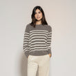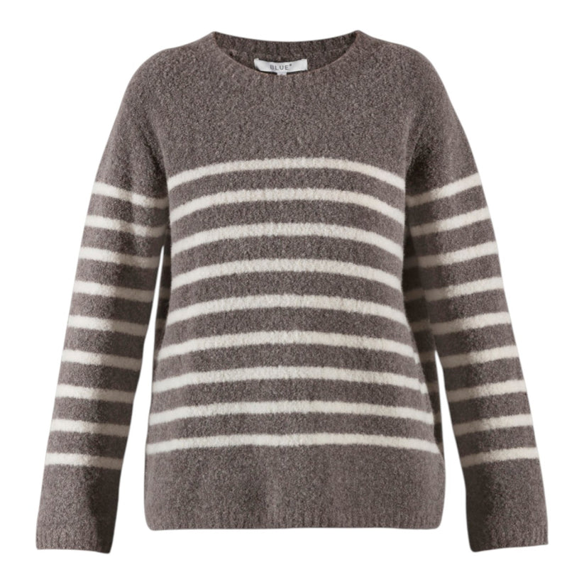 Denne bløde, let bouclé-strikkede pullover i et klassisk stribemønster kombinerer en tidsløs nordisk æstetik med maksimal komfort.