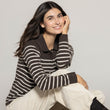 Denne elegante stribede polotrøje i sart chokolade og creme bringer et feminint touch til klassisk maritimt design.