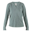 Den bløde bomuldsblanding falder naturligt langs kroppen og giver en behagelig, let løs pasform, mens den V-formede udskæring uden knapper tilfører et ubesværet, skandinavisk præg.