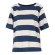 Stribet t-shirt i navy og hvid med en let børstet bagside.