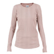 En sofistikeret, lyserød bluse med et vertikalt ribbet design, der giver et slankt og strømlinet udseende.