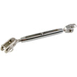 Vantskrue i forkromet bronze med åbne sider. Toggle i ene ende og gaffelterminal i den anden.