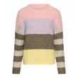 De farverige blokstriber giver trøjen et frisk og moderne look, der gør den let at kombinere med både jeans, bukser og nederdele. Materialeblandingen med uld og alpaka føles blød mod huden, holder dig varm og sikrer en formstabil kvalitet, der holder sæson efter sæson.