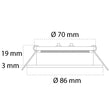 LED indbygningsspot med varmt hvidt lys og frontrammen i spejlpoleret rustfrit stål. CE-godkendt.