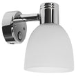 LED væglampe med varmt hvidt lys i poleret rustfrit stål og børstet glas, med indbygget sensitivt lysdæmpningssystem og USB oplader.