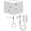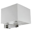Væglampe i poleret rustfrit stål med firkantet stofskærm. Udskiftbar LED G4 pære med varmt hvidt lys. Tændes med touch kontakt og inkl. USB oplader.