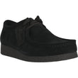 Denne klassiske Wallabee-sko fra Clarks er en ikonisk model, der kombinerer tidløst design med høj komfort. Fremstillet i sort ruskind med Clarks' karakteristiske håndsyede detaljer, giver skoen et elegant og alsidigt look, som passer til både casual og mere formelle outfits.