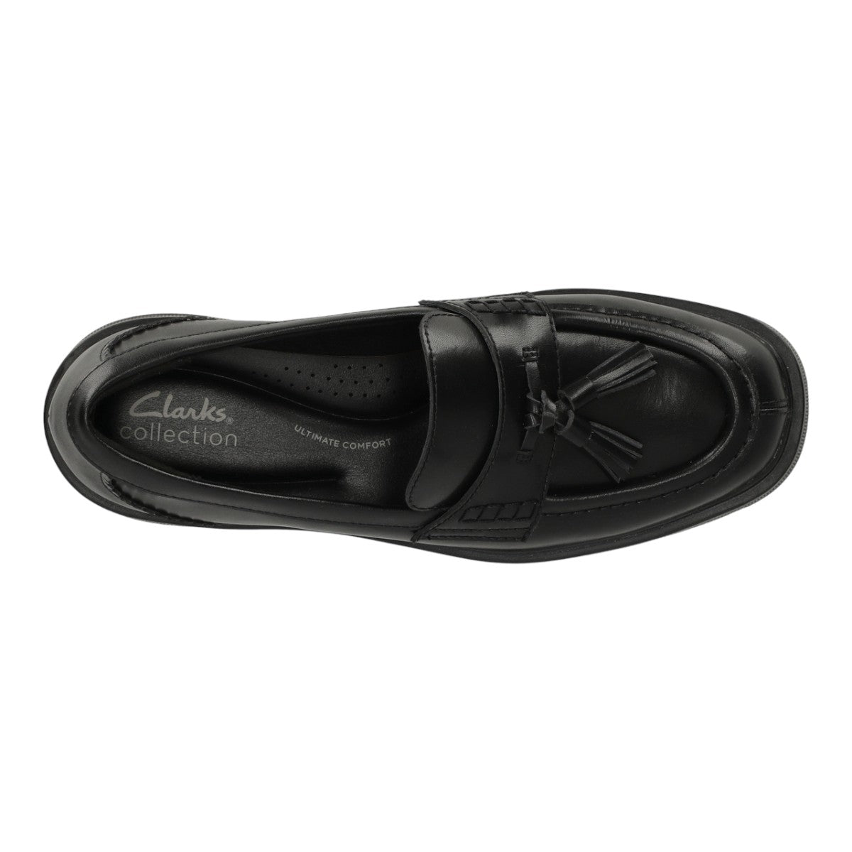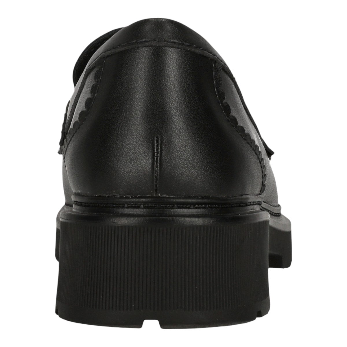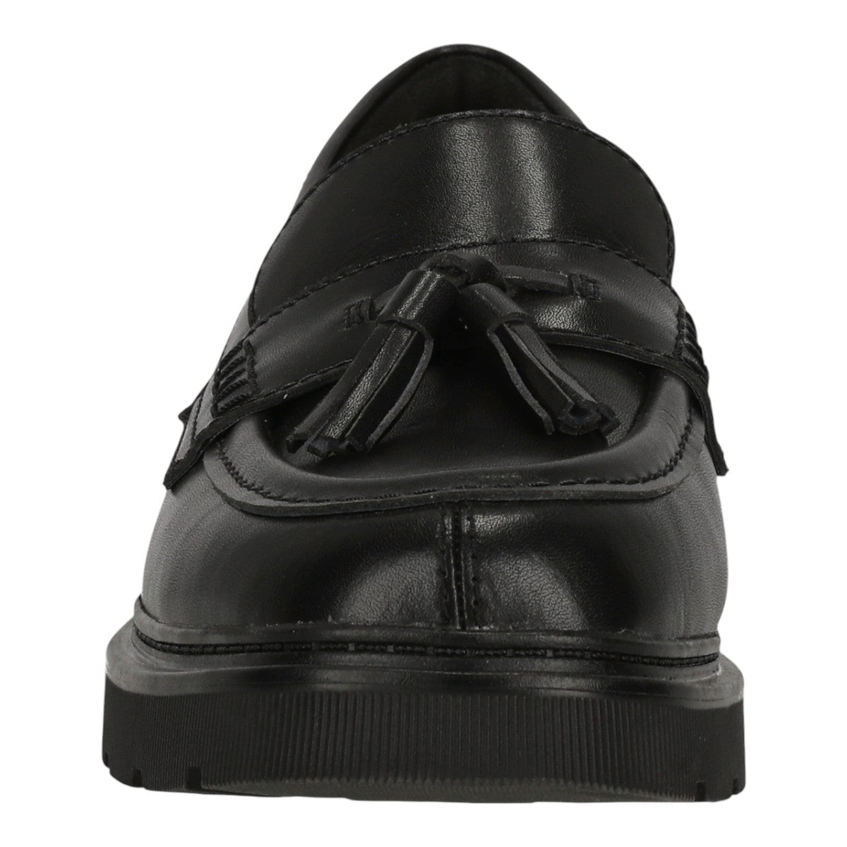 Clarks loafer i sort læder – et tidløst valg, hvor klassisk elegance møder komfort. Denne sko er fremstillet i glat sort læder med dekorative kvaster foran, der giver et sofistikeret og feminint udtryk. Den kraftige sål giver et moderne look samtidig med god støtte og holdbarhed, perfekt til både hverdag og kontor.