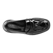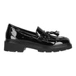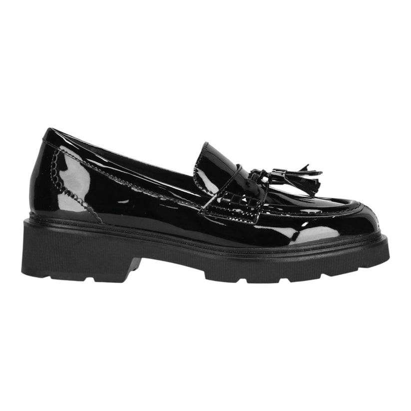 Elegant Clarks loafer i sort lak – en stilren sko, der kombinerer klassisk design med moderne komfort. Den glansfulde lakoverflade giver et eksklusivt udtryk, mens den dekorative kvast foran tilføjer et feminint touch. Den kraftige sål sikrer stabilitet og komfort, så du kan bruge skoen hele dagen – både til arbejde og fest.