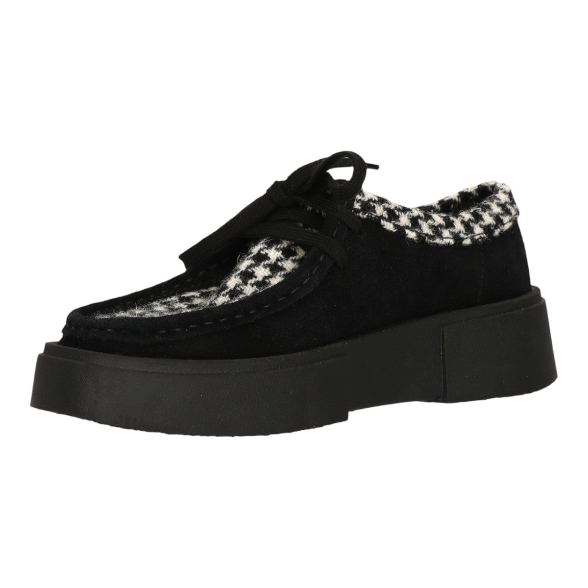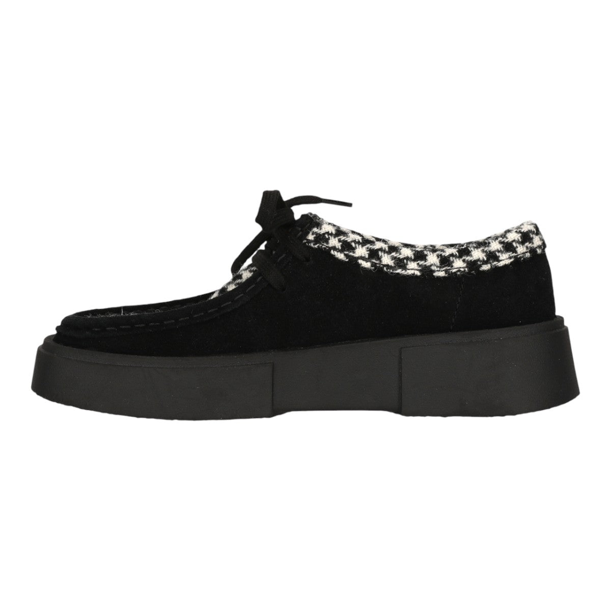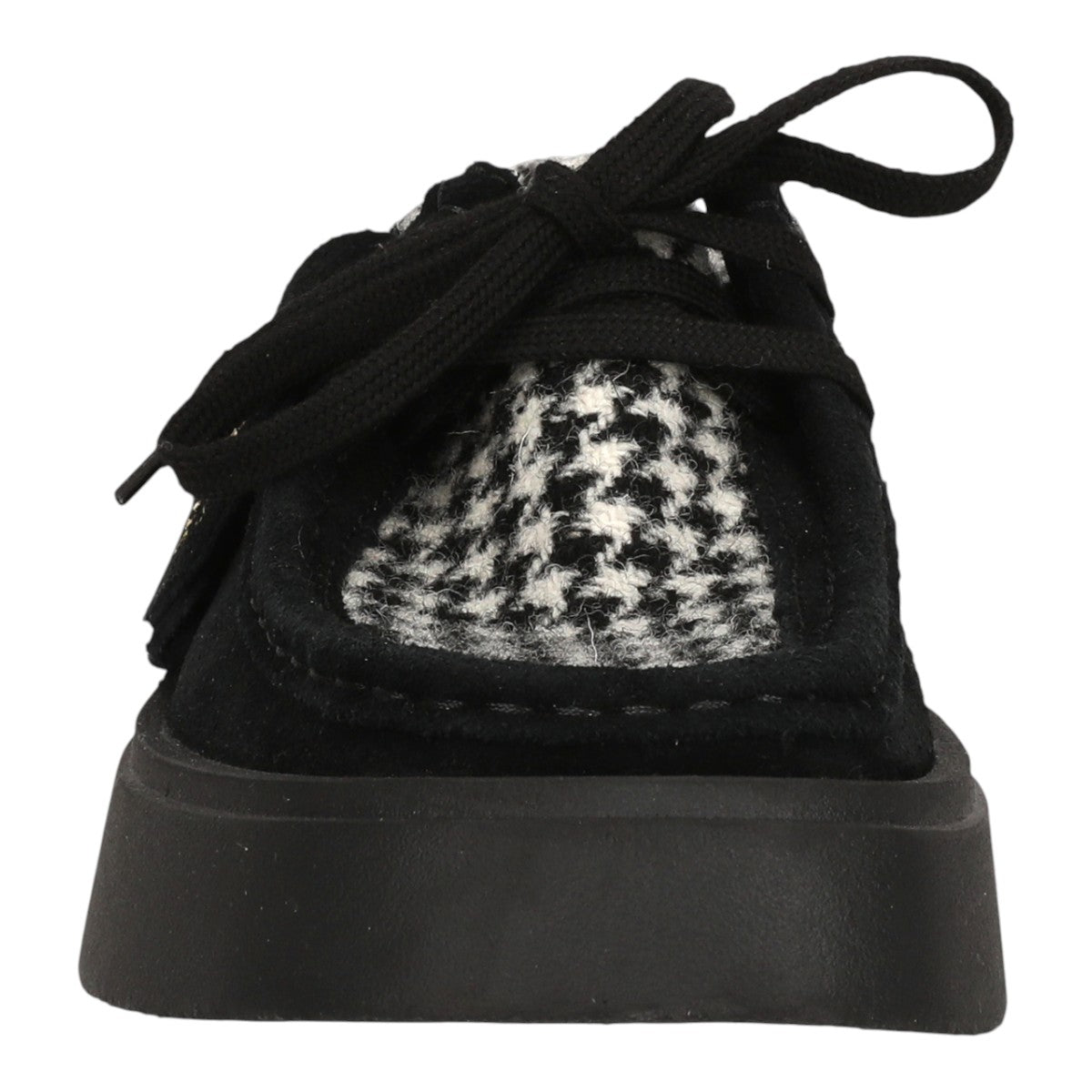 Den karakteristiske crepe-lignende plateau-ydersål giver et moderne udtryk og fremragende komfort, mens snørelukningen og det bløde ruskind sikrer en god pasform. Harris Tweed-detaljerne tilføjer et unikt, elegant præg, som gør skoen perfekt både til hverdag og mere sofistikerede anledninger.