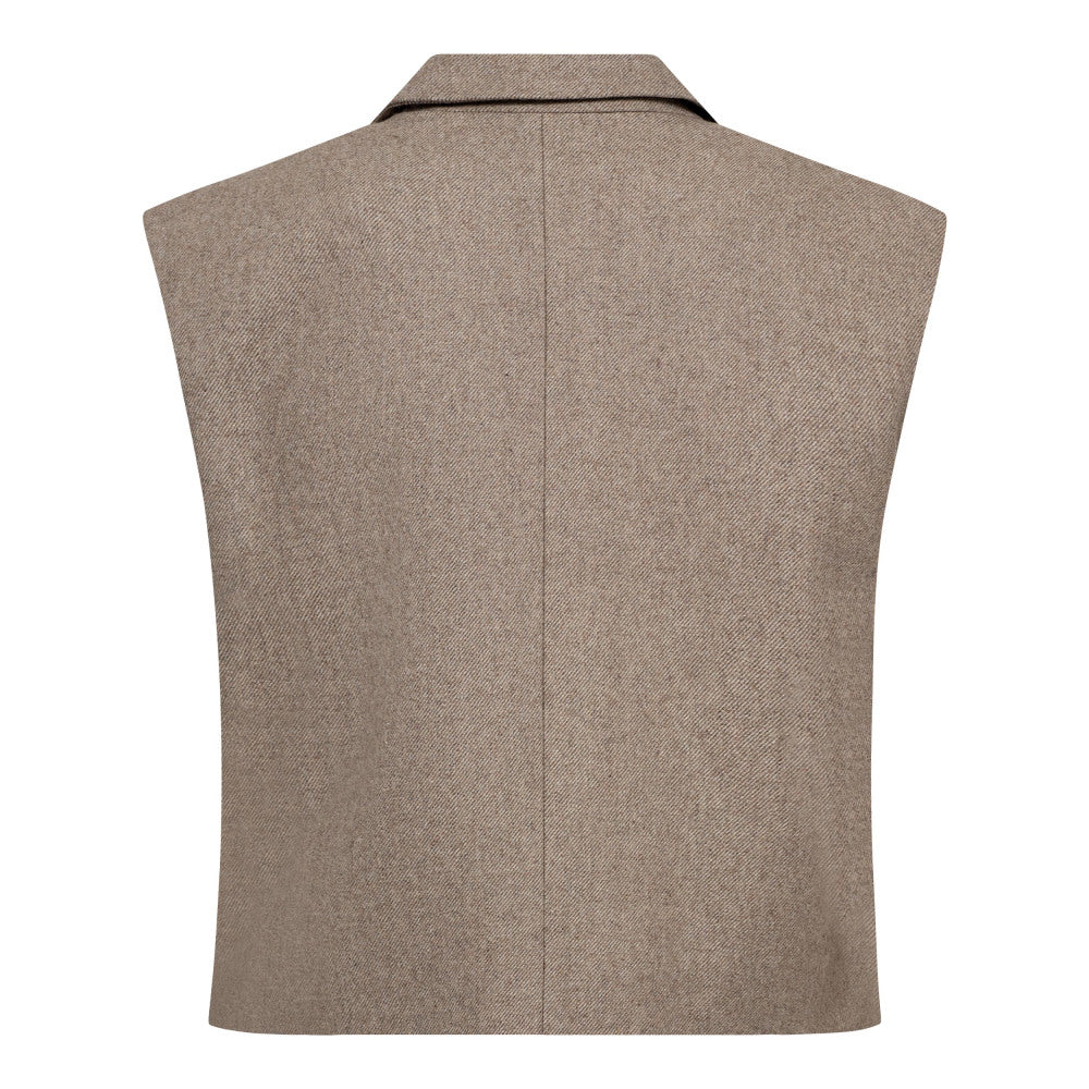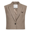 MeeraCC Vest fra Co'Couture er en sofistikeret og alsidig vest, der forener klassisk stil med moderne komfort. Den er designet med V-hals og reverskrave, som giver et elegant og tidløst udtryk. Den frontale knaplukning gør det nemt at style vesten – brug den som et lag over en skjorte eller strik, eller som en del af et sæt til mere formelle anledninger.