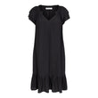 Denne sorte kjole fra Co’Couture er et elegant og alsidigt valg til både hverdag og sommerens mange anledninger. Kjolen er lavet i en let og luftig kvalitet, der falder smukt om kroppen, og har en afslappet silhuet med korte ærmer og v-udskæring.