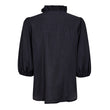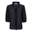 Anika Frill Shirt fra Co'Couture er en feminin skjorte med et sofistikeret udtryk. Den sorte nuance kombineret med de fine lodrette striber og dekorative flæser langs knaplukningen giver blusen et eksklusivt look. Den høje flæsekrave og de trekvartlange ærmer med let puf og elastikafslutning understreger det elegante og moderne design.