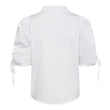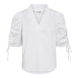 Sanna Puff V-Blouse fra Co'Couture er en stilren hverdagsbluse med fine, feminine detaljer. Den let v-formede halsudskæring med flæsekant og de rynkede puffærmer med bindebånd skaber et moderne og sofistikeret udtryk. Den hvide farve gør den alsidig og nem at style til både jeans og nederdele – perfekt til både kontor og fritid.