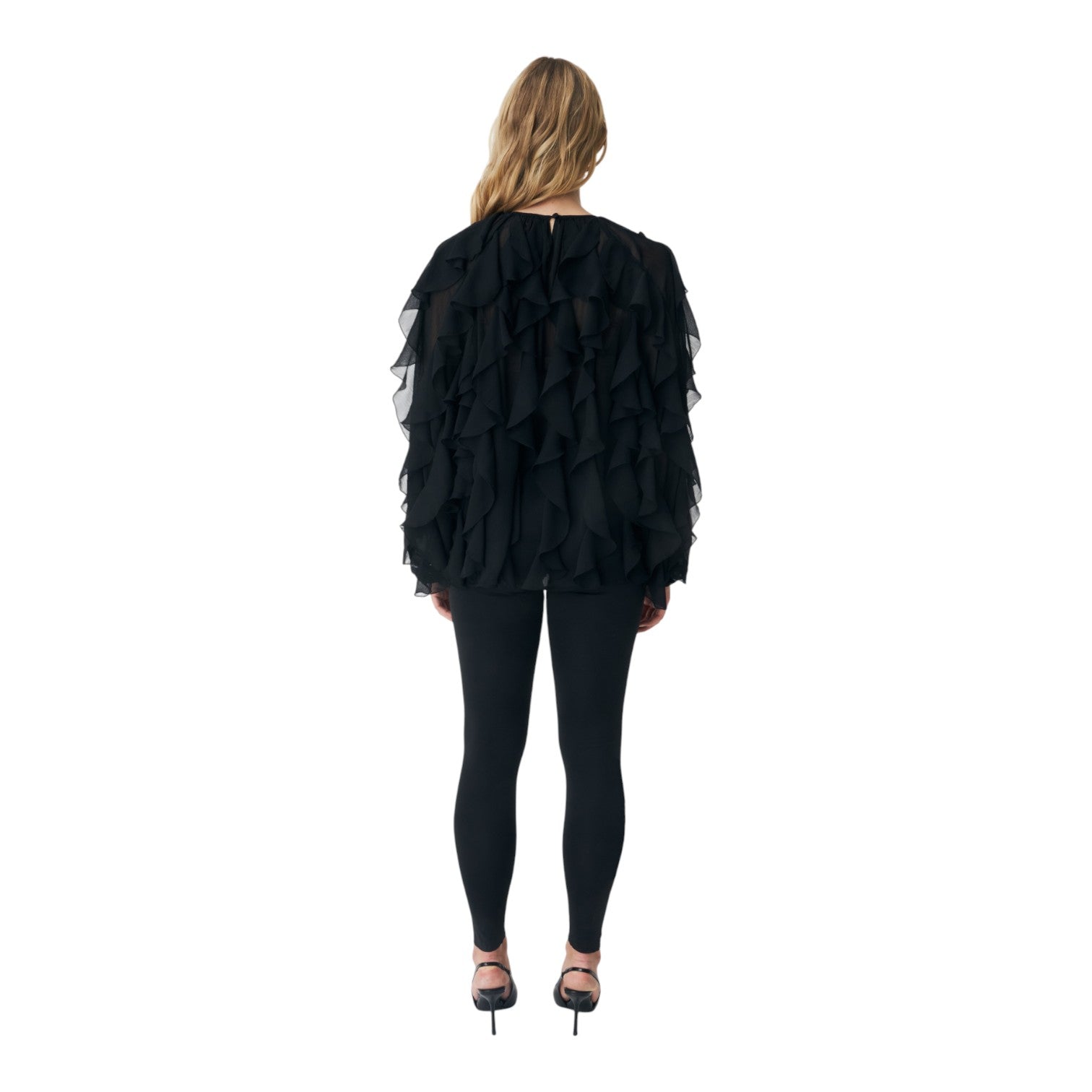 Ryacras Bluse forener romantisk elegance med et moderne udtryk. Den let transparente kvalitet giver et luftigt og feminint look, mens de fine flæsedetaljer og stofbetrukne knapper tilfører et eksklusivt præg.