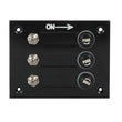 Sort bakkelit el-panel med 3 kontakter og 3 sikringer