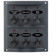 UV bestandigt, stænktæt plastik el-panel inkl. neoprenbetrukne kontakter med lys. Monteret med 15 Amp. bladsikringer.