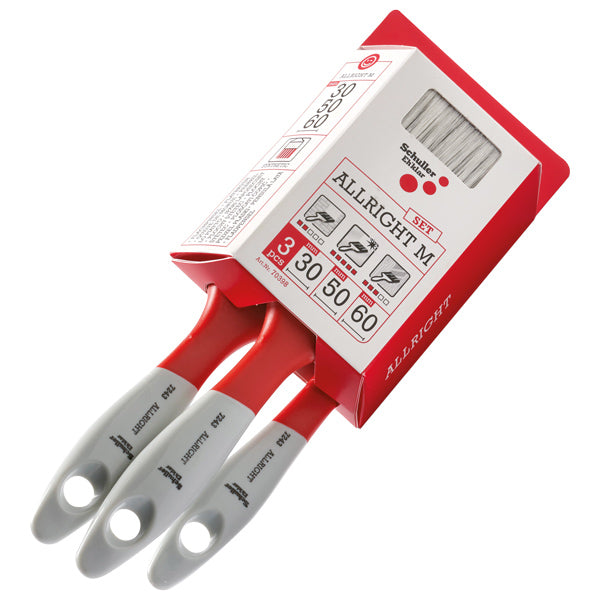 Sættet består af 3 pensler i hhv. 30, 50 og 60 mm